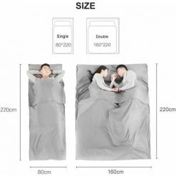 KAEJYIUT Sac De Couchage Double Doux Double Drap De Couchage Coton Sac De Couchage Chaud Drap De Voyage Léger Pour Hôtel Voyage En Plein Air Camping (Gris, Double)