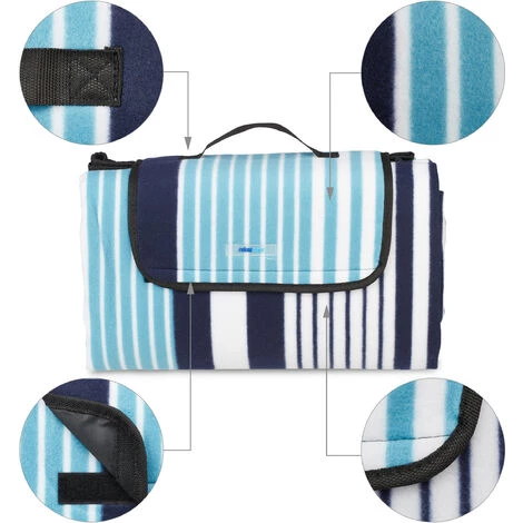 En été, la couverture pique-nique décorative est le compagnon idéal pourles activités en plein air. 4 à 6 personnes peuvent s’asseoir confortablementsur le plaid en polaire moelleux. Le rembourrage doux de la couverture assureun confort optimal et le revêtement en aluminium protège contre le froid etl’humidité du sol. Profitez des longs bains de soleil ou des barbecues avec vosamis et votre famille. Le tapis piquenique se plie facilement et peut êtretransporté par la poignée.