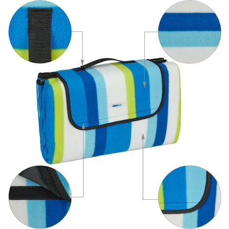 En été, cette couverture de pique-nique décorative sera votre compagnonidéal pour les activités en plein air. 4 à 6 personnes peuvent s’asseoirconfortablement sur le plaid en polaire moelleux. Le rembourrage de lacouverture assure un confort optimal et le revêtement en aluminium isolantprotège contre le froid et l’humidité du sol. Profitez de longs bains de soleilou de barbecues avec vos amis et votre famille. Le tapis de pique-nique se pliefacilement et peut être transporté par la anse.