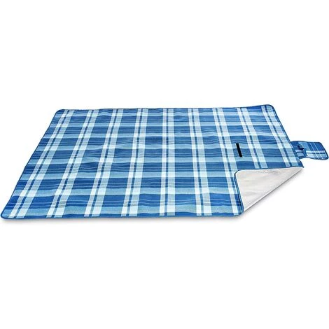 - Motif de plaid charmant en bleu et blanc, dimensions compactes une fois pliée, un rabat maintient la couverture en place, poignée cousue pour un transport facile