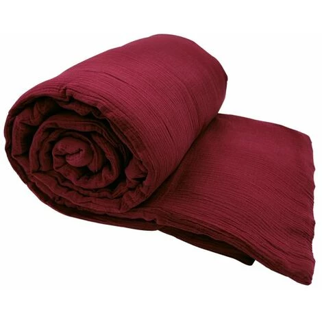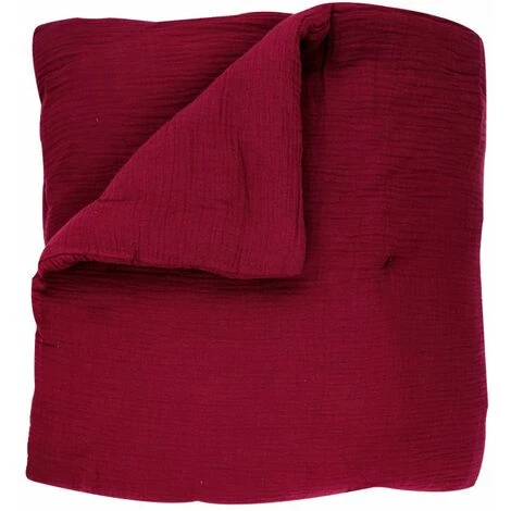 Boutis jeté de lit 100% coton 90 x 180 cm finition ourlet non déhoussable garni effet gaze de coton uni rouge foncé. Envie de donner une touche colorée à votre lit, ou pour le protéger des petits invités poilus ? Ajoutez ce boutis sur votre lit ou votre canapé, sa texture effet gaze de coton sera aussi agréable à regarder qu’à toucher.