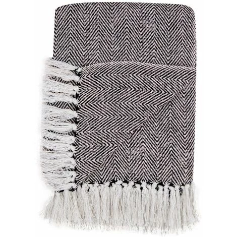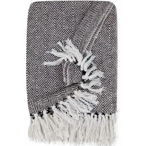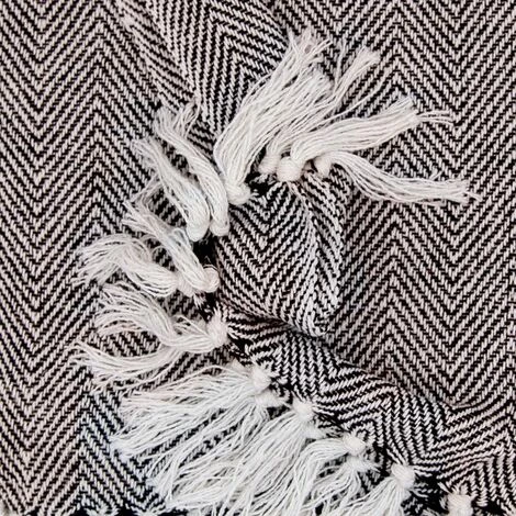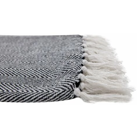 Fouta, jeté de lit, plaid 100% coton 120 x 150 cm avec franges jacquard motif chevrons bicolore blanc noir. Une fouta au design élégant que vous emmènerez partout avec vous; lors d’un pique-nique, devant la piscine ou encore à la plage.