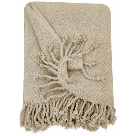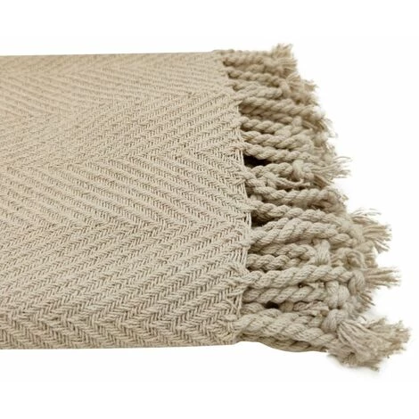 Fouta, jeté de lit, plaid 100% coton 120 x 150 cm avec franges jacquard motif chevrons ton sur ton écru. Une fouta de qualité au tissage chevrons et dont la couleur s’harmonisera avec l’été.