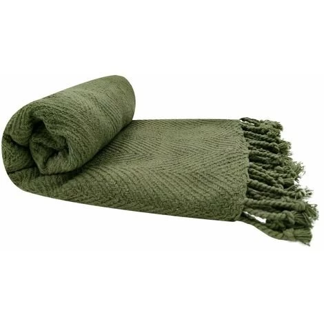 Fouta, jeté de lit, plaid 100% coton 120 x 150 cm avec franges jacquard motif chevrons ton sur ton vert kaki. Article d’été incontournable cette fouta 100% coton vous accompagnera dans toutes vos aventures.