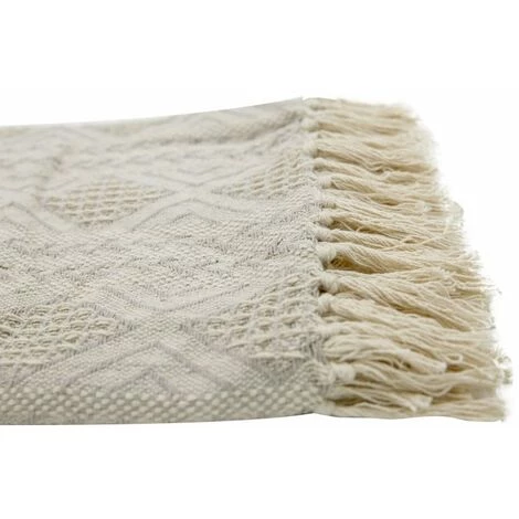 Fouta, jeté de lit, plaid 100% coton 120 x 150 cm avec franges jacquard motif géométrique chevrons taupe, naturel. Une fouta à la couleur chaleureuse, parfaite pour une journée en bord de mer ou dans le jardin.
