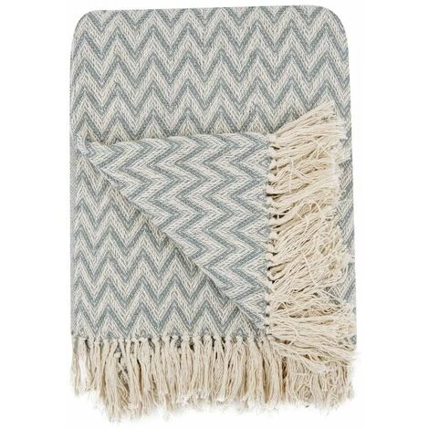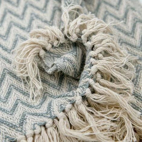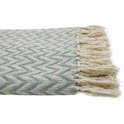 Fouta, jeté de lit, plaid 100% coton 120 x 150 cm avec franges jacquard motif géométrique chevrons vert d’eau. Cette fouta vous accompagnera partout, lors d’une soirée estivale, pour un picnic printanier et bien plus encore !