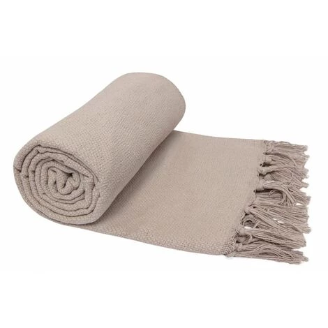 Plaid, fouta, jeté de lit 100% coton avec franges uni naturel. Un plaid en toile de coton dont le style s’adaptera à tout type de décoration intérieure.
