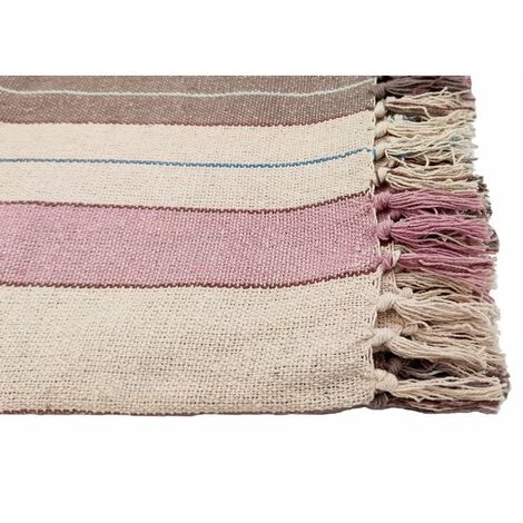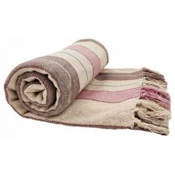 Plaid, fouta, jeté de lit 100% coton 120 x 150 cm avec franges tramé rayures multicolore. Un plaid au style bayadère parfait pour une journée champêtre.