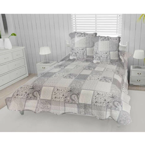 Boutis imprimé matelassé 220×240 cm et ses 2 taies d’oreiller 65×65 cm Double face Finition bords festonnés Pré-lavé Qualité : 100% coton