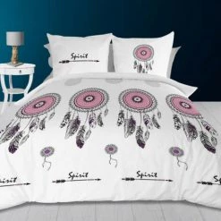 – Motifs sous la forme d’attrapes-rêves colorés en rose, de flèches et d’inscriptions « Spirit
