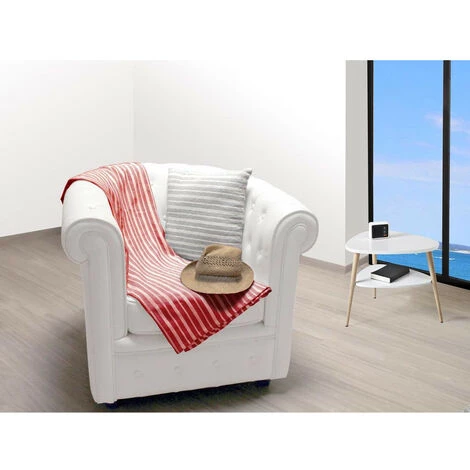 Peut servir en jetĂ© de fauteuil ou plaid Rayure jacquard Dimensions : 130×150 cm Composition : 80% coton – 20% polyester Fabrication artisanale