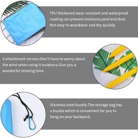 【Imperméable et résistant au sable et non irritant】: La couverture de pique-nique / tapis de plage est faite de tissu en nylon haute densité. La couverture de pique-nique est inoffensive, insipide, thermiquement isolante et non irritante pour la peau, ce qui est idéal pour les enfants et les animaux domestiques.