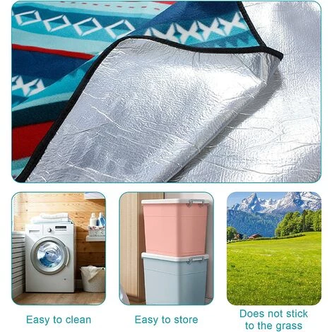 【Resistan a lhumidite】- Le dessous du tapis du pique-nique est recouvert d’un revêtement en aluminium, rendant la partie inférieure imperméable. Vous pouvez vous asseoir et piqueniquer sur des sols légèrement humides.