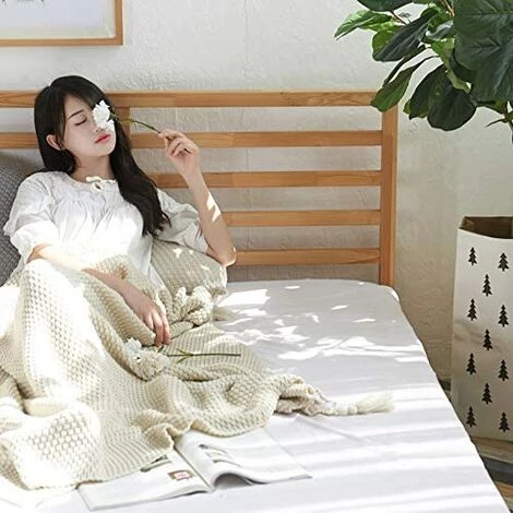 TINOR Couverture En Tricot Plaids Canapé Couvre-lit Tapis De Table Jetés De Lit Nordique Chaud Doux Avec Frange Faite à La Main Pour Plage Pique-Nique Toutes Saisons (Beige,130 X 170cm)