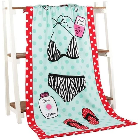 Serviette de plage imprimé fabriquée de bon microfibre, confortable et respirant, avec une bonne absorption d’eau, et séchage rapide, non décoloration, solide et durable.