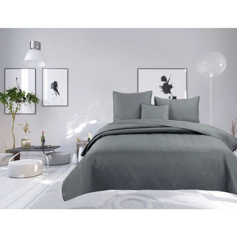 Couvre lit boutis 1 place uni « piquage Métro » Acier