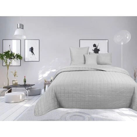 Couvre lit boutis matelassé 4 pièces uni « piquage Carreaux » Silver