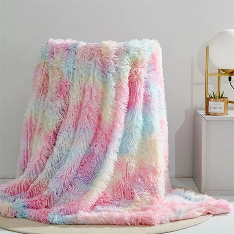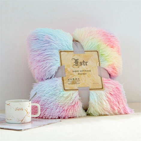 【Style Arc-en-Ciel Super Doux】 Un nuage qui peut être vu et touché ! La texture de la couverture hirsute 130x160cm est aussi mignonne et douce que les poils d’un petit chat angora. Vous devrez peut-être rivaliser avec vos amis à fourrure pour en être propriétaire. Les magnifiques couleurs de l’arc-en-ciel sont si agréables à regarder, pleines de vitalité, créant une atmosphère chaleureuse et donnant à votre pièce un embellissement doux et sucré.