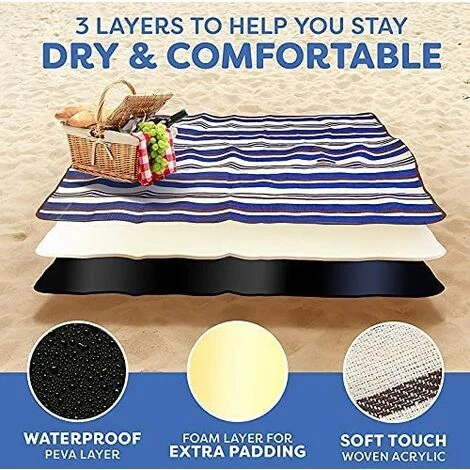 - COUVERTURE DE PIQUE-NIQUE DURABLE ET IMPERMÉABLE: Cette couverture de pique-nique est construite avec un support en PEVA imperméable afin de garder l’humidité à l’extérieur, pour une assise confortable et un nettoyage facile