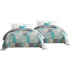 Décoratif:❤ Le couvre-lit patchwork avec motif imprimé doux ensemble.style simple et moderne. il est facile à assortir aux différents styles de décoration.Les formés de couture donnent au couvre-lit un air plus moderne.
