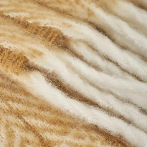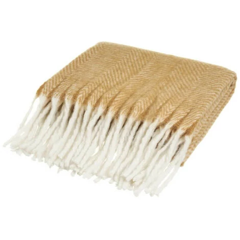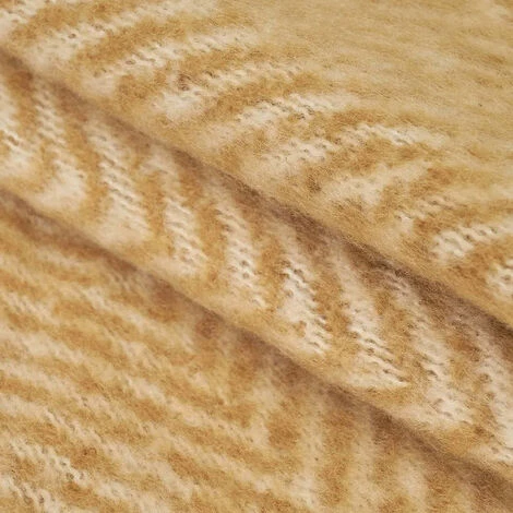 - Une plaid au motif chevrons couleur moutarde et toucher laine. Une plaid polyvalente et fonctionnelle que vous pouvez placer sur un canapé ou un fauteuil. offrant plus de chaleur lors des froides journées d’hiver. Son toucher doux et tendre le rend parfait pour compléter la décoration de votre salon, créant une atmosphère chaleureuse, ainsi qu’un abri pendant les saisons plus fraîches.
